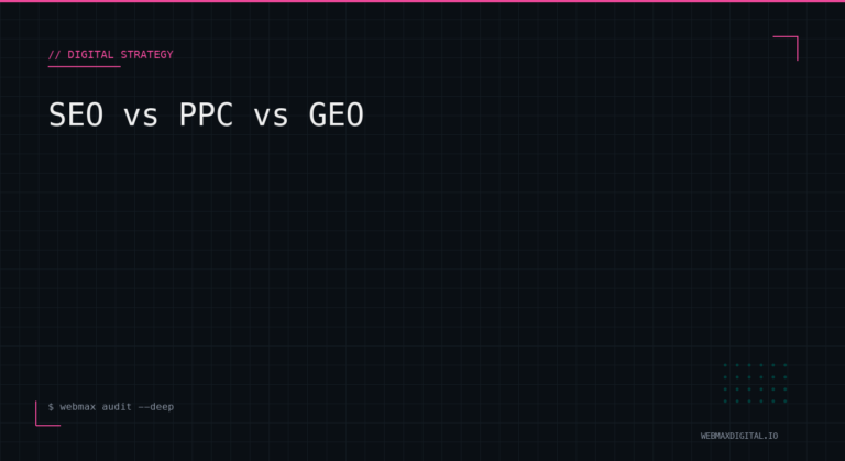 A comprehensive comparison of SEO, PPC, and GEO for UK businesses in 2026. Discover which digital marketing channel delivers the best ROI based on your budget, timeline, and business goals.